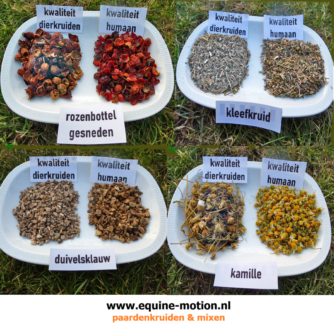 Met opzet vermelden we niet; Paardenbloem, Kurkuma, Mariadistel, Knoflook, Guldenroede, Gember en Duivelsklauw, als veilige kruidensoorten voor paarden ook al worden ze in de praktijk vaak gevoerd.