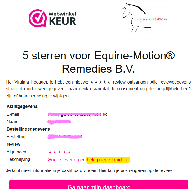 - De KLANTENSERVICE van Equine-Motion Remedies voor een oprecht advies! -